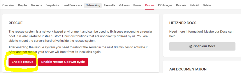 Step 1: Enable Rescue Mode in Hetzner Console